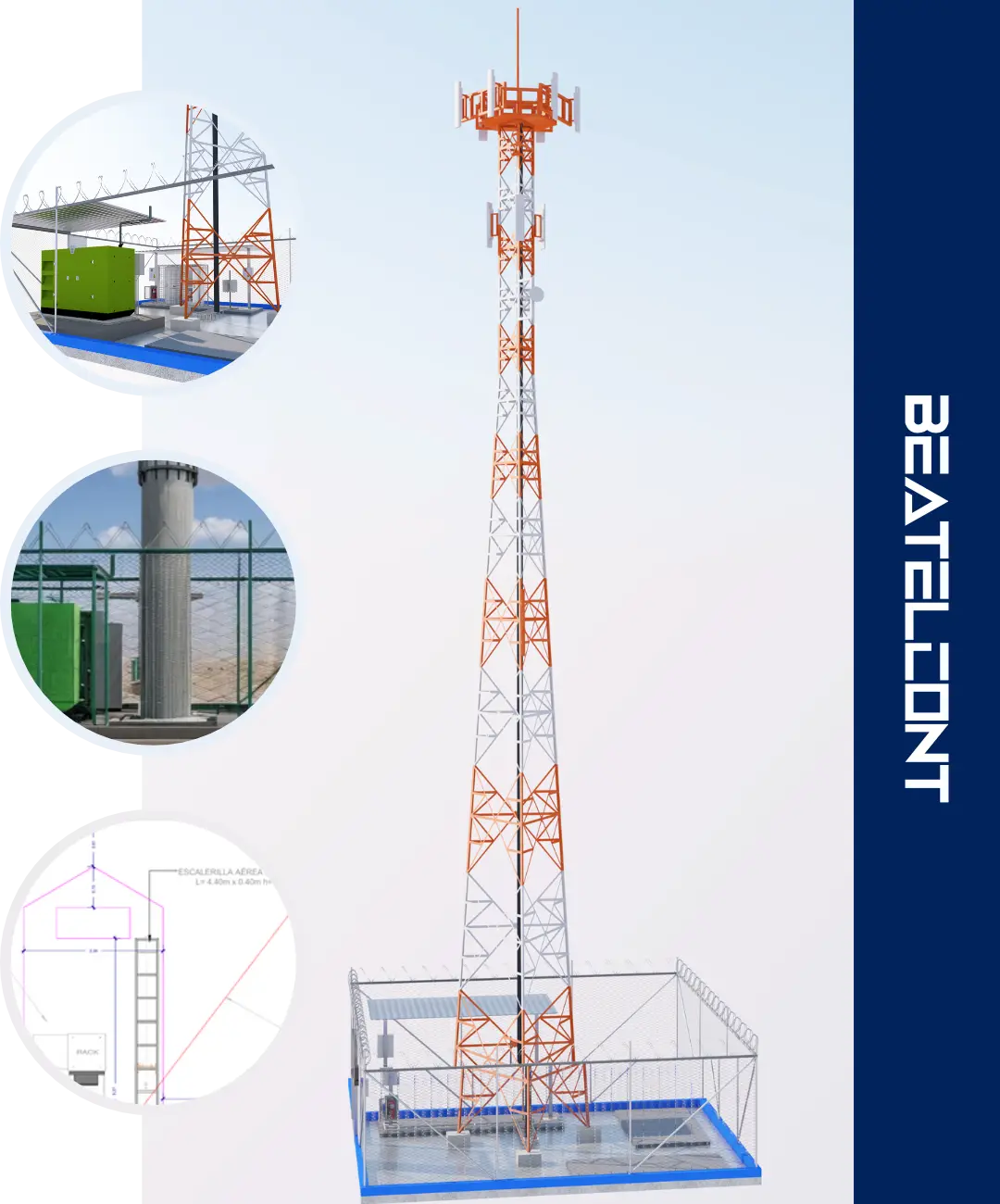 En BEATELCONT S.A. fabricamos y montamos torres auto soportadas, torretas, mástiles, monopolos y estructuras en H, adaptadas a cada entorno. Cada diseño responde a exigencias técnicas y operativas.