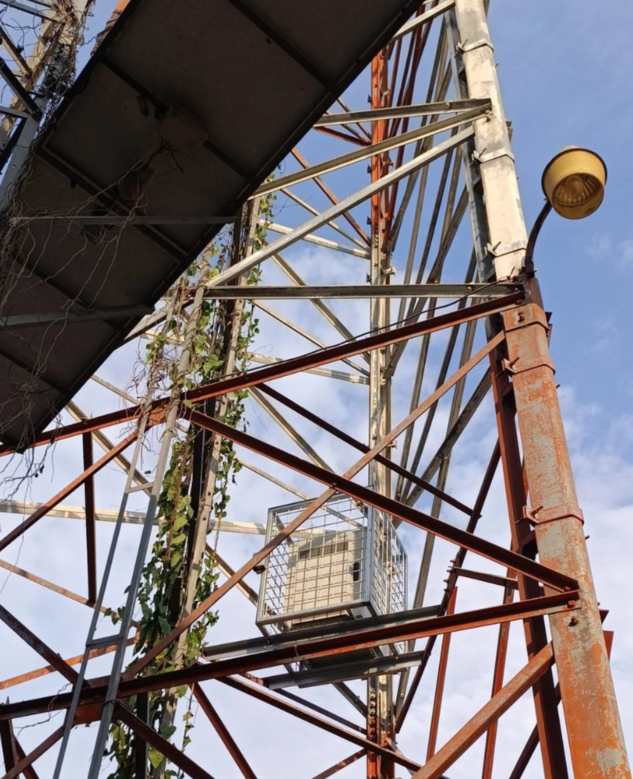 Estructura de soporte para anclaje a la torre e implementación de jaula para confinamiento de rack.
